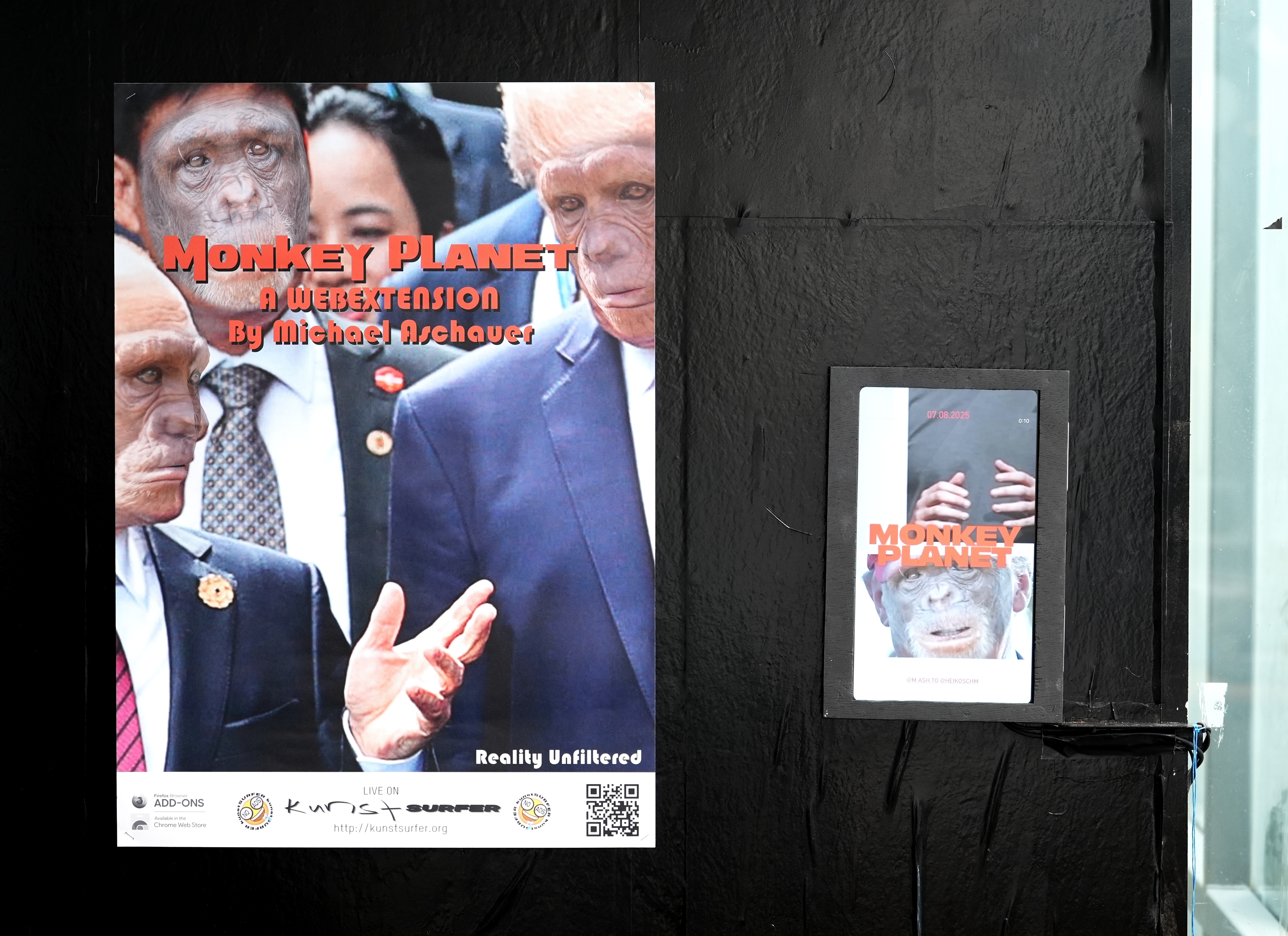 Der Künstler und Programmierer Michael Aschauer gibt in seinem Projekt Monkey Planet, das er für den browserbasierten Online-Kunstraum Kunstsurfer konzipiert hat, eine humorvolle und zugleich kritische Antwort. Er adaptiert dabei die Browsererweiterung Kunstsurfer so, dass alle menschlichen Gesichter auf besuchten Webseiten durch Affengesichter ersetzt werden. Das Ergebnis ist eine entpersönlichte Medienlandschaft, in der der Homo sapiens seine visuelle Dominanz verloren hat.